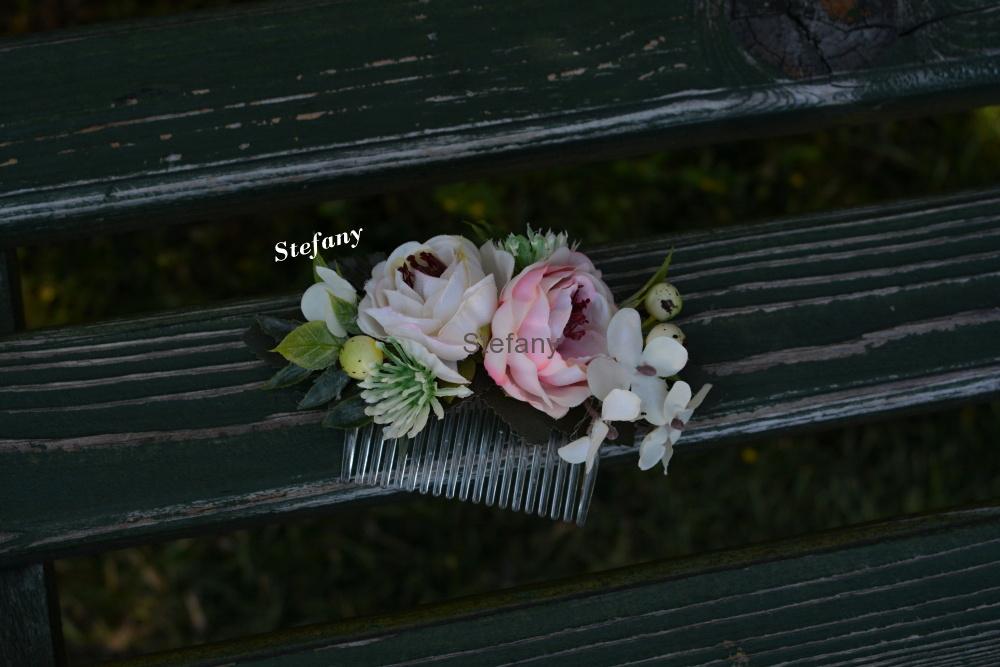 Hřebínek z látkových květů na plastové hřebínku
