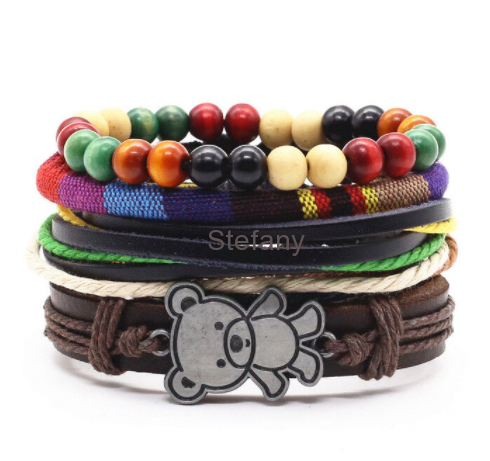 Náramek umělá kůže, skládá se ze čtyř samostatných náramků