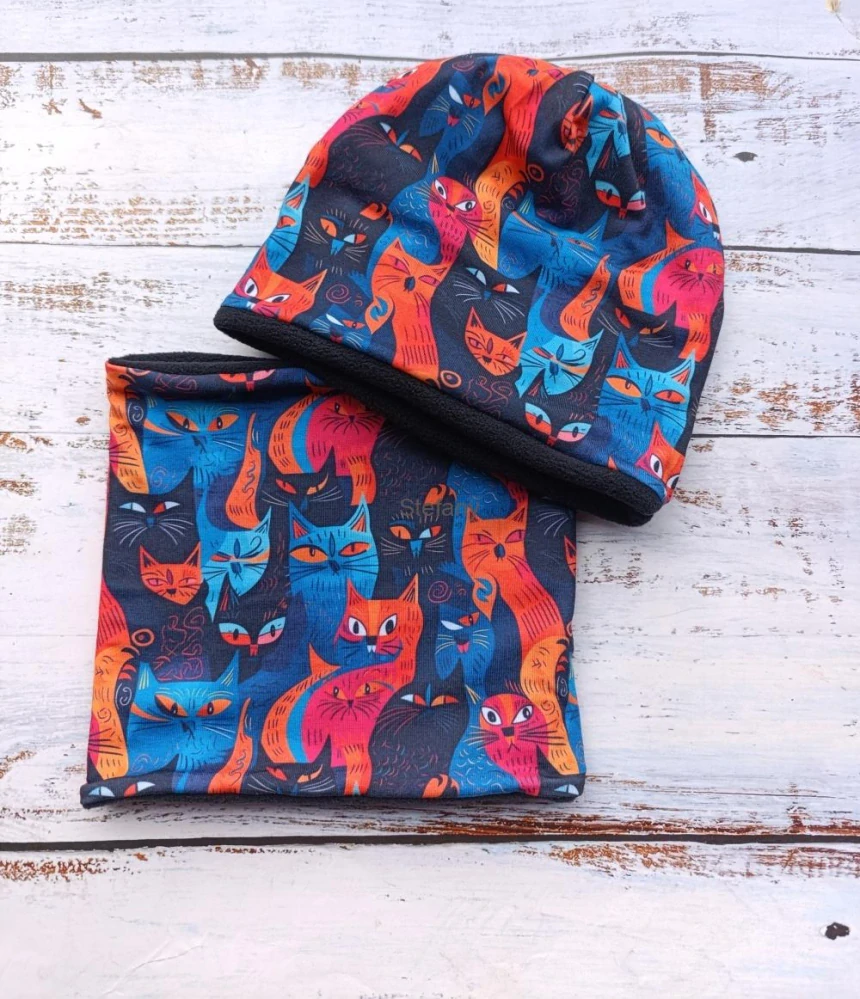 Designová oboustranná čepička s podšívkou, materiál horní designová vrstva teplákovina 96%bavlna + 4% elastan.