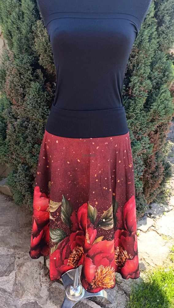 Půlkolová sukně, bavlněný úplet, luxusní materiál, který se nevytahuje, drží barvy a je z nejlepší příze. Krásně pružný a velmi dobře se nosí.