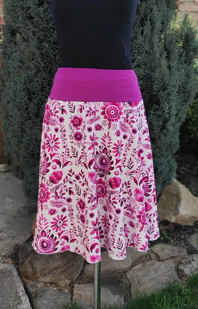 Půlkolová sukně . Materiál - funkční úplet Bella, luxusní materiál, který se nevytahuje, drží barvy a je z nejlepší příze. Krásně pružný a velmi dobře se nosí.