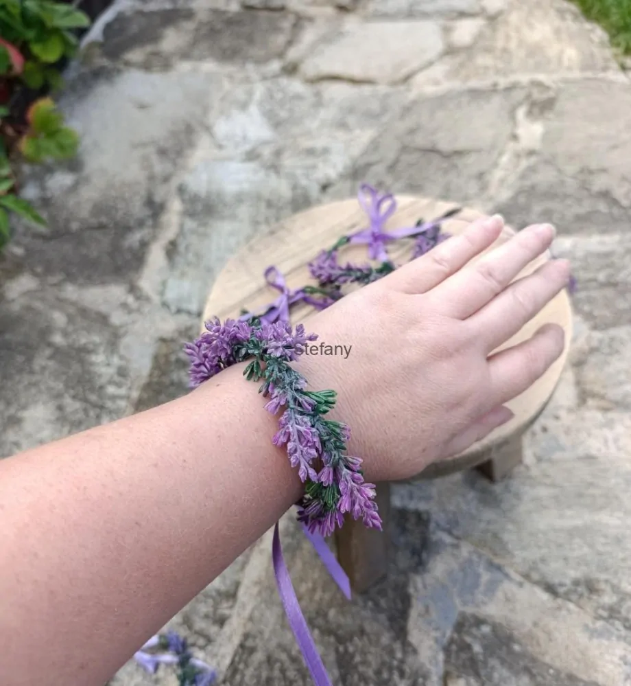 Náramek levandulový, nastavitelný obvod - na zavázání stužkou