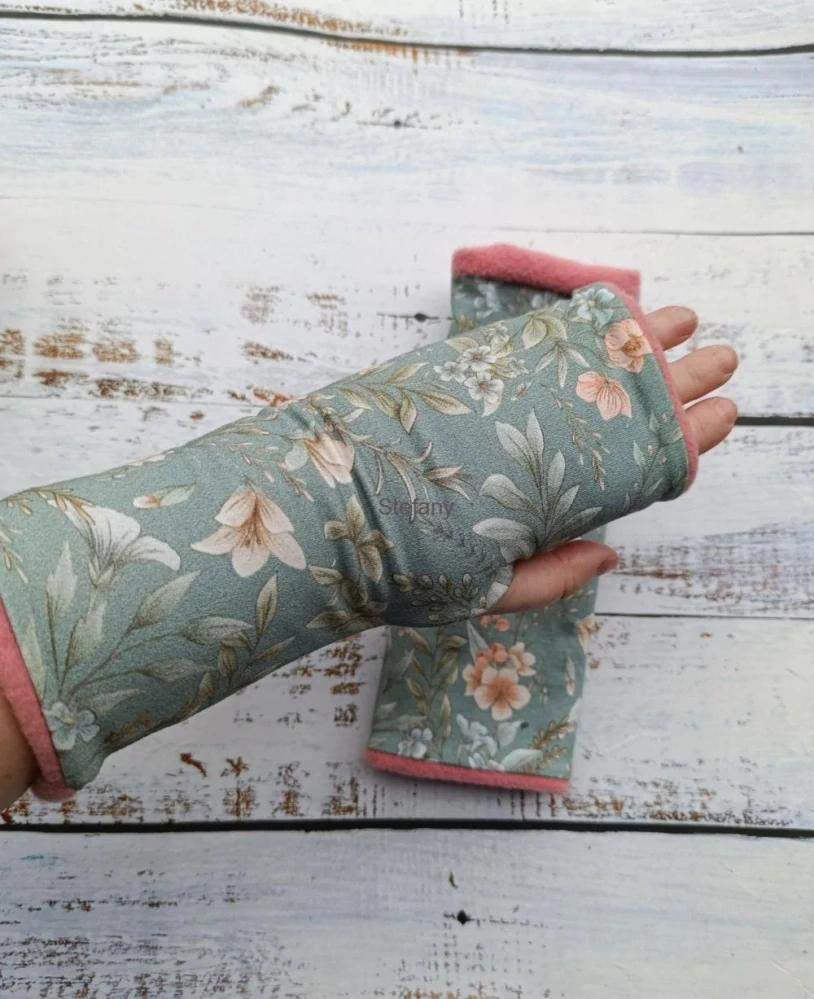 Velikost na délku mají bez ohybu cca 24cm - délka se reguluje pak ohnutím fleecu viz. foto. Horní obvod přes prsty je 19cm a přes dlaň 24cm. Pěkně to obepíná - je to pružné.