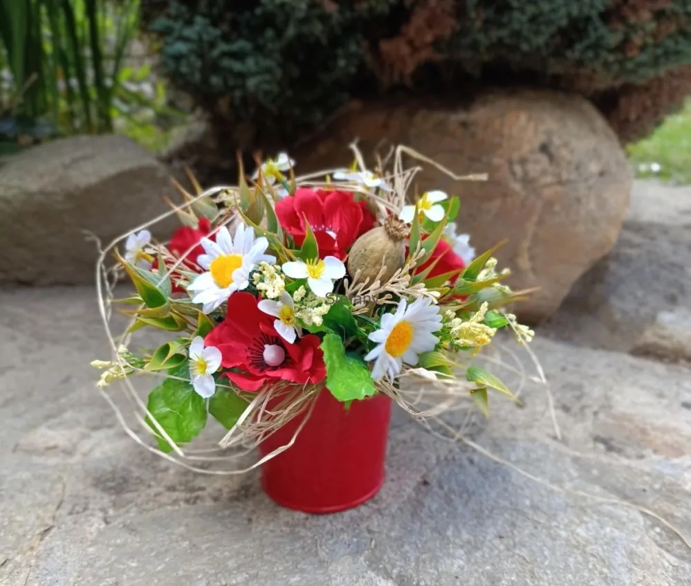 výška 19cm, průměr nazdobeného květináčku cca 22cm