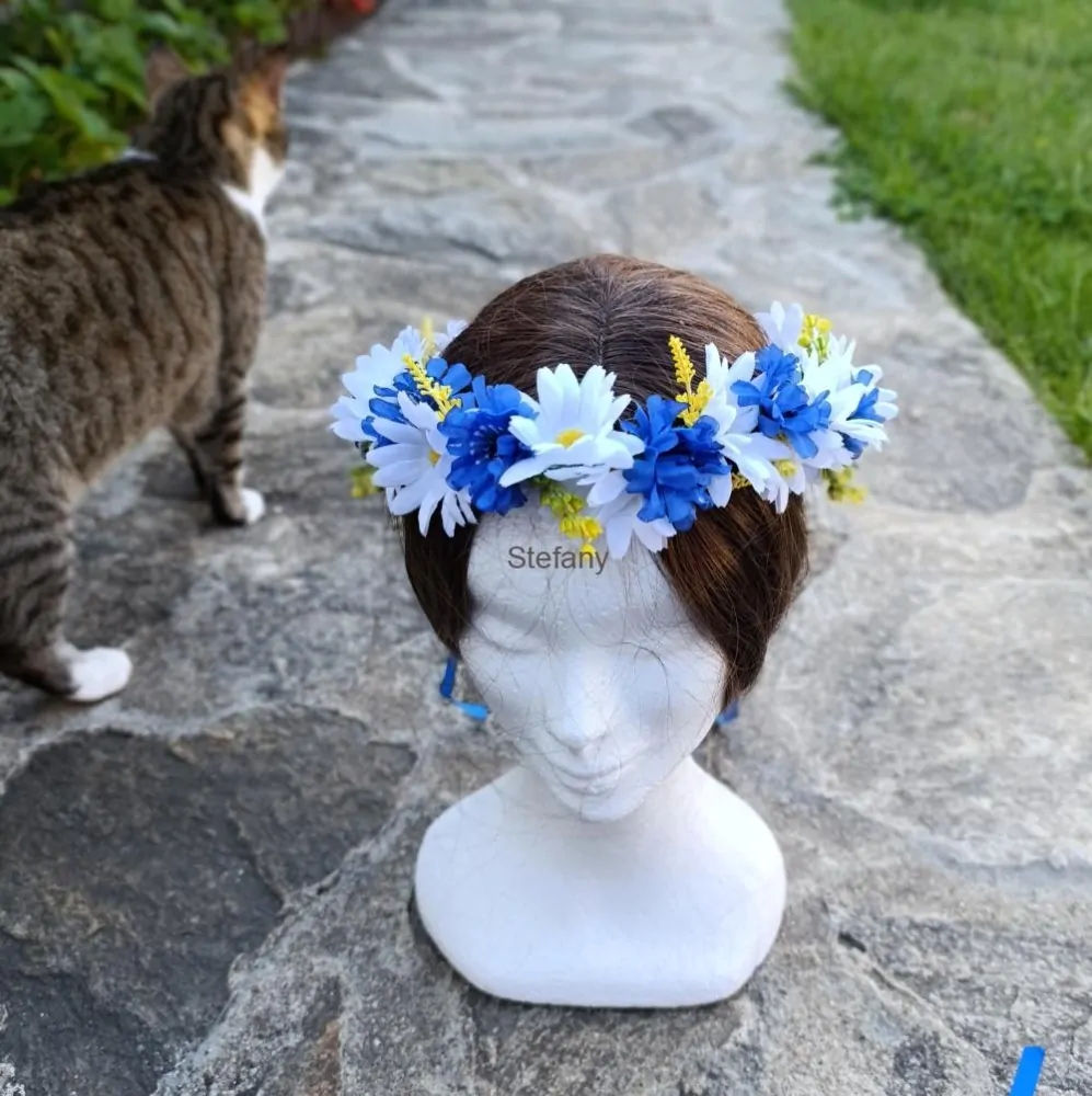 Věneček z kvalitních umělých květin, uni velikost - vzadu na zavázání stuhou